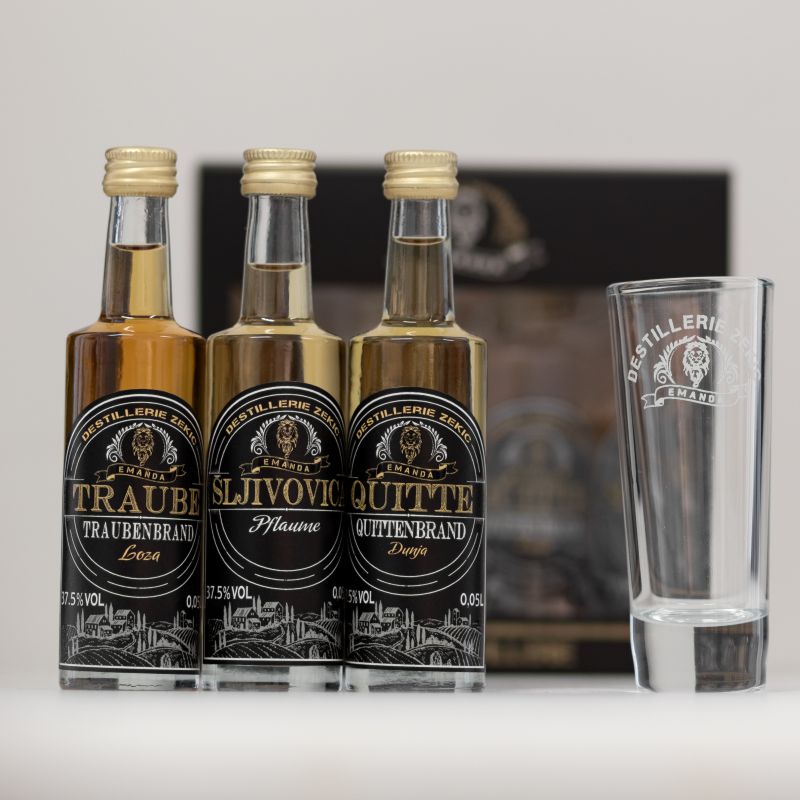 Guten Freunden macht man kleine Geschenke. Hierfür eignen sich die Edelbrand Sets der Zekic Destillerie ausgezeichnet. Edle Boxen mit verschiedenen Edelbränden und dem passenden Glas. Geeignet für jeden Anlass.